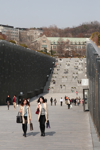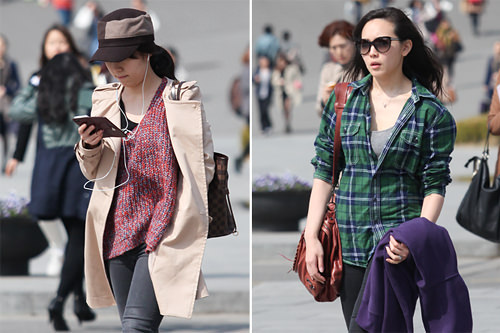 从昨晚到今天凌晨为止,淅淅沥沥下个不停的春雨终于停止,首尔的早晨天空晴朗。到聚集各类时尚杂货店铺的大学区、著名女子大学——梨花女大附近,看看女大生们当下的装扮如何吧。