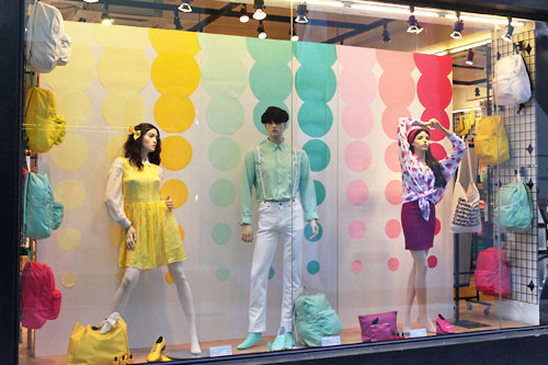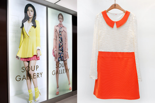 青春时尚品牌“SOUP”今春的服饰呈现荧光色主题。不论是夹克还是连衣裙等,都大胆采用鲜艳的荧光色搭配。