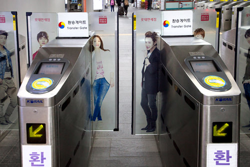 另外,在外国游客经常利用的机场铁路A'REX的检票口,也可看到韩流明星代言的免税店广告。每个站的乘客和该站周边地区的特点不同,站内广告也会有各自的特点。乘车的途中来看看这些广告,无聊的时间也会被有趣的发现所填补掉喔。