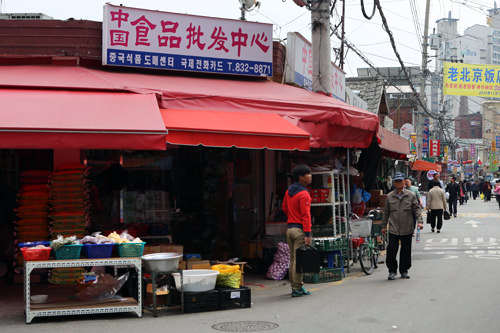 在市场里有很多羊肉料理和火锅料理店。一到晚上,这里吸引着很多中国人,还有想要品尝正宗中国料理的韩国人的到来。