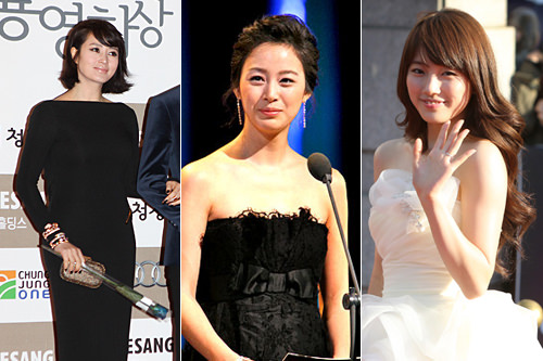 韩国三大电视台的月火电视剧竞争十分激烈。由金惠秀(左)饰演派遣职员的《职场之神》、金泰希(中央)主演的第一部历史剧《张玉贞,为爱而生》、miss A成员秀智(右)主演的《九家之书》等,出现人气女演员“三足鼎立”的现象。