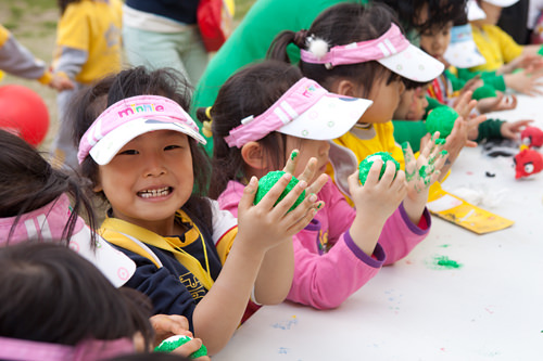 在陶土工艺区,孩子们正在拿自己稚嫩的小手将陶土捏出各种模样。 另外,还有制作徽章、皮球等工艺品,及杯子蛋糕等可供全家人一起分享的体验!