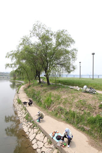 在公园的一角还可以看到人们垂钓的样子。在5月强烈日光的照耀下,垂钓者们一边享受着日光浴,一边悠闲地度过午后时光。在这里会钓到什么样的鱼呢?