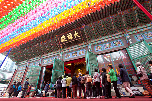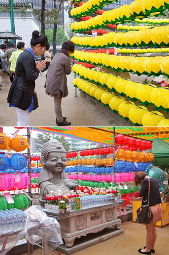 今天的首尔一直断断续续地下着小雨。尽管对于外出的行人来说或许有些不便,不过韩国佛教界最大的庆典活动“燃灯节”仍然热闹开场,吸引了许多人来到曹溪寺的门前。