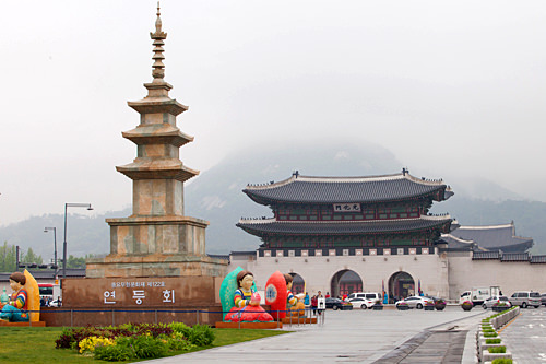 在景福宫前面的光化门广场中央,也为“燃灯节”设置了纪念塔,使得庆典的气氛更加浓厚。
