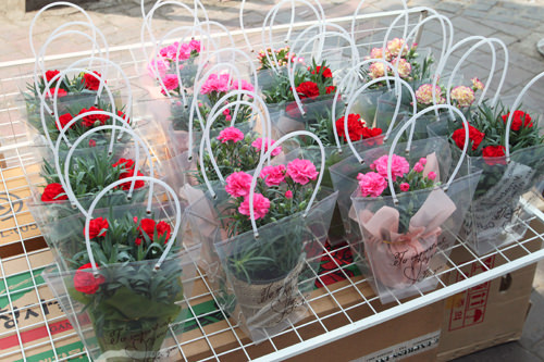 每到这种特别的日子,韩国到处都会摆出各种出售礼物和花篮的摊子。学校周围和繁华的街道上也都被这些小摊围得很热闹。从挑选礼物的学生们认真的表情就能看出这个日子有多重要。