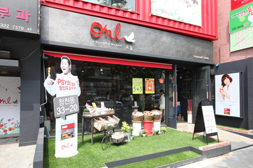 所望化妆品旗下品牌Onl也在3月29日于新村开设了1号店,广告模特竟然是人气风靡全球的鸟叔PSY和以童颜美貌著称的崔江熙。
