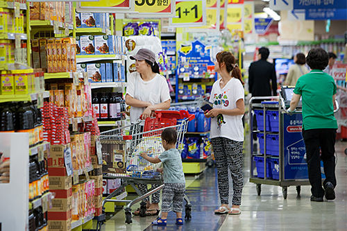 一场大雨之后,首尔今天的气温又迅速回升到30度左右,首尔西部的大型超市Homeplus世界杯店的清凉消暑商品及雨具等人气正旺。
