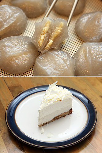 另外,还有用土豆做成的甜品哦。除去用土豆做成的年糕(上),在“REMINIS CAKE”咖啡厅里还可以吃到土豆慕斯蛋糕(下)。今年的夏至,就像韩国人一样用美味的土豆食品来迎接夏天的到来吧!