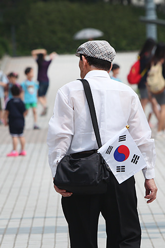 活动会场上还发放韩国国旗“太极旗”。今年是6.25朝鲜战争开战63周年,在这个重要的日子,韩国人们的心中会有很多的想法划过。