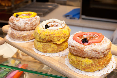 专营店“New York CRONUT”以百货店地下为中心正在扩展其销售网点。羊角甜甜圈在明洞的乐天百货店总店、乐天百货店金浦机场店都可以买到。此外,在上半年引来热潮的德国甜点施内巴尔(Schneeballen)的公司是它的母体,所以在“cafe SCHNEEBALLEN 弘大1号直营店”也可以买到羊角甜甜圈。
