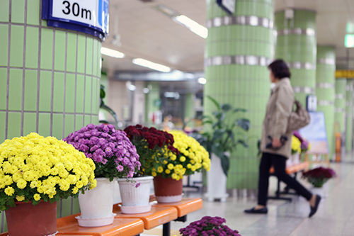 地铁6号线缯山站内正在举行秋季之花菊花展览,7号线道峰山站内举行介绍道峰山偶来小路的展览等,各地铁站都在举行各具特色的活动。