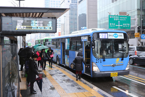 目前,首尔的市区巴士上普遍已经安装了侧面号码牌,预计将逐渐扩散到首尔近郊和各地方的巴士。先在电子指示牌上确认相应巴士的进站时间,然后再查看侧面号码牌,乘坐巴士应该会更加轻松了吧?