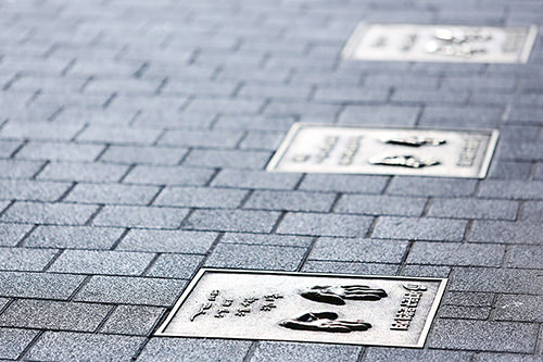 在两边的步道上,你还可以看到小说家赵廷来、诗人金南祚等韩国15位著名文学家的手印,这是为纪念曾经以“文学之路”而闻名的延世路而设立。