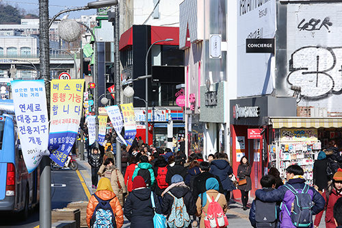 新村地区坐拥几大著名大学,从地铁2号线新村站到延世大学之间的这段著名的商业街也让这里的道路一直显得繁华而拥挤。不过最近如果你来到这里,将可以看到一个不同的新村。