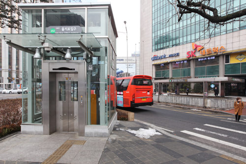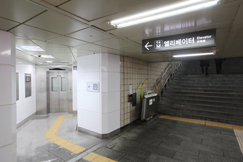 现在,乙支路入口站的5、6号出口终于安装了电梯,以往需要与地铁站工作人员联系后才能使用的残障人士自动升降梯现在也可以撤去了。