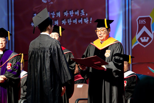 去看一下位于新村的西江大学的学位授予仪式吧。今天的主角毕业生,还有教授们都穿上了黑色学士袍、戴上了学士帽。在韩国,毕业生们都要聚在大讲堂举行毕业典礼,与国内相比气氛更加庄重。
