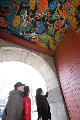 门的天顶上画着2条龙,鲜明的色彩与独特的图案让不少游客在此特意停留观看。早年的光熙门是连接南山与汉江的必经之路,很多丧葬队伍也多从此门经过。