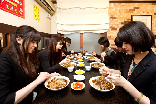 韩国人一般不太习惯独自一人在餐馆用餐,大部分都会选择叫外卖在家吃。因此,这一天也是炸酱面店送外卖人员一年中最忙碌的一天。