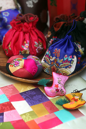 除了干明太鱼之外,韩国人还将彩色的包袱、辟邪符、金猪等装饰品视为可以庇佑自己的护身符。这些物品不仅带有吉祥的含义,携带和使用也更方便,因此非常有人气。