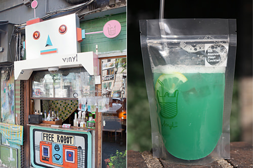 在弘大地区有一个名叫“vinyl(塑料)”,销售透明袋装鸡尾酒的店铺。于每天下午4点开业,周末可以看到在弘大俱乐部前排队的很多年轻人手中都拿着一袋“vinyl”的鸡尾酒。
