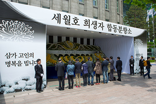 遇难情况通过各大媒体不断报道,举国上下哀悼的气氛更加加深,在遇难学生们的学校所在地京畿道鞍山等地设置了17所灵堂,现已有150万余人前往灵堂悼念遇难者。