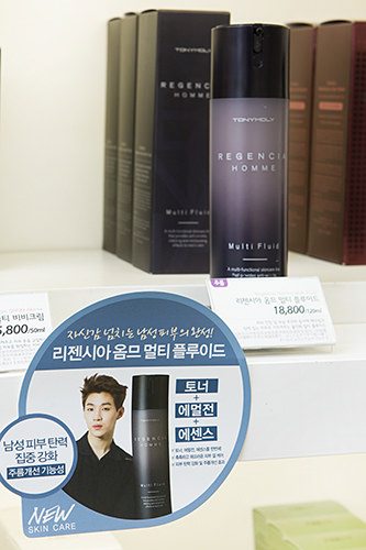 由SUPER JUNIOR M代言的“托尼魅力(TONYMOLY)”的“REGENCIA HOMME Multi Fluid”(18,800韩元/120ml)是内含化妆水、乳液、精华素等功效的多效合一化妆品。它的人气秘诀在于能为繁忙的早晨节省很多时间。