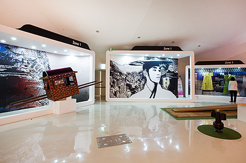 特别展以偶然、相遇、心动、思念、命运、爱情等为主题分区展示,图为第1展区“偶然”,这里再现了朝鲜时代的空间,展示有决定男女主人公命运的轿子及剧中都敏俊穿的朝鲜时代服饰。