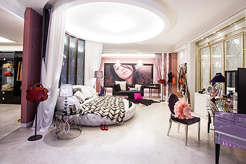 再来看看女主的闺房,剧中千颂伊使用剧后成为热议话题的种种化妆品描眼线、涂红唇的化妆台,明星气质十足的大幅挂照、豪华的圆形睡床、时尚的空间设计……有没有让你联想到剧中的点滴场景呢?