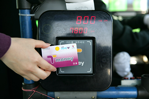 除此之外,交通卡还添加了可以购买KTX火车票及长途汽车票,交纳高速公路过路费等新功能。使用方法和以前一样,仅将T-money卡靠近传感器刷卡即可。