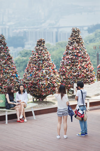 来N首尔塔的话绝对不能错过的“爱情锁”。这里是恋人们发誓永远相爱的场所,但最近光顾这里的同性朋友和群体也貌似很多。在挂上锁之前拍一个纪念照吧!