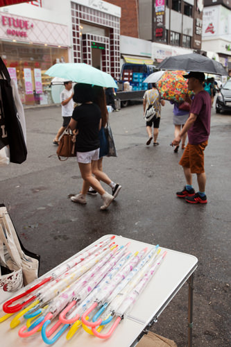 连日阴天的首尔从昨日起正式进入梅雨季,今年的梅雨季比往年来迟了9天左右。每天都很热闹的弘大地区,今天也有点冷清。