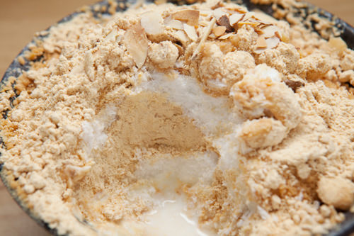 在韩国,豆粉与年糕的搭配已经有悠久的历史了,称得上一道传统点心。而除了年糕,醇香的豆粉渐渐被用到越来越广泛的美食中,不断创造出人气爆棚的绝妙美味,现在可谓到了豆粉的全盛时期。