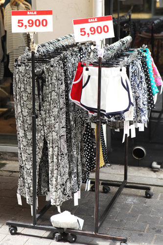 走在街上,随处可见穿着清凉的冰箱裤或冰箱裙的行人们,而丰富的色彩和图案也为人们提供了百搭的可能,且任何搭配都能演绎出独特的风格。街边所售的“冰箱裤”价格也大多在5,000~10,000韩元左右,不同花色可以多买几条来穿。