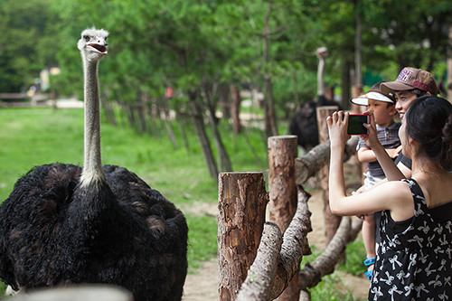 在南怡岛上漫步,其间还可看到大鸵鸟、松鼠、兔子、鸭子、孔雀等各种动物,它们似乎早已熟悉了人类的存在,很容易跟人亲近,带小孩来这里野餐也是不错的选择。