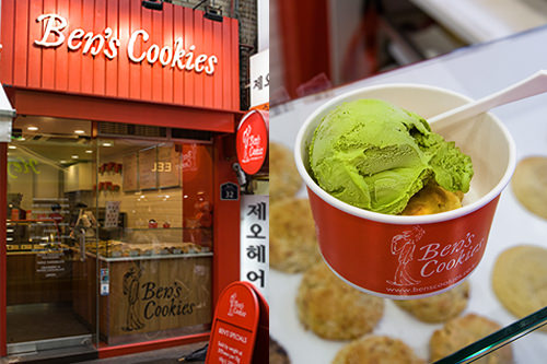 去年,英国的老牌曲奇店——"Ben's Cookies"在韩国开业后,大受美食家的追捧。明洞、弘大、新沙洞等韩国旅游景点里分店陆续开张。与夏威夷曲奇的香脆酥口不同,英式曲奇柔软湿润、丰厚香甜。共14种口味,按重量计算,一个约3,000韩元(约18元)。