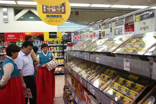 此外,今年各大超市的节前预售量也比往年有大幅上升,原因是通过预售订购时可以获得比实际价格更多的优惠。需要预购的人可以向导购员咨询,简单地填写资料后就可以了。今年来韩国旅游时,也别忘了为家人准备一些中秋礼物哦!