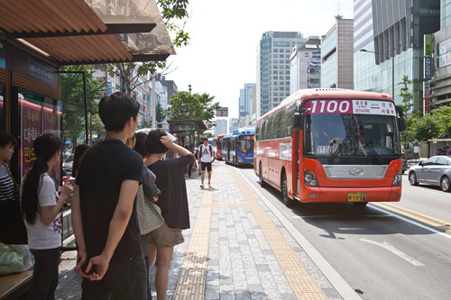 暑假结束后,迎来的是上班上学高峰期的交通拥挤问题。今年7月16日韩国政府颁布了“座席巴士满座时,不许再载客”的交通条款。为了缓解交通压力,政府在交通高峰期添加了200辆广域巴士,以应需求。