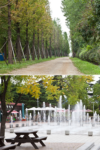 以种满水杉的林荫路而闻名的不仅仅有南怡岛,还有首尔西部的世界杯公园(照片上)哦!在这里可以眺望横穿首尔的汉江,可以欣赏荷花池里静静绽放的荷花,也能欣赏美妙的喷泉,让人心旷神怡。