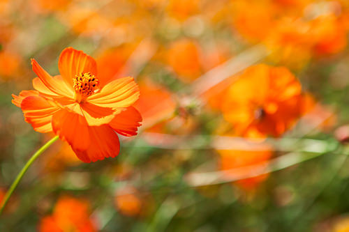 不知道是因为秋天到了所以花才开得如此迷人,还是花都开了所以秋天才到来,这可能只有波斯菊自己才知道吧。尽管花期不长,却美得炫目。