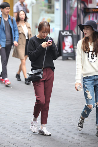 除此以外,勃艮第酒红色的鞋、帽子、围巾、丝袜等时尚单品也随处可见,潮人们多用纯净的黑色来与勃艮第酒红搭配,不仅入时,而且尤显妩媚动人。今秋来韩国旅游的你,也顺应这流行趋势,用勃艮第酒红色时尚元素将自己打造成“2014秋季女人”吧!