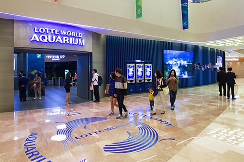 另一座大厦则为娱乐馆,是人们休闲放松、采集生活用品的好去处。地下1~2层为水族馆,可在此看到650余种、55,000多只亚热带和亚马逊地区的海洋生物;中间层为Himart和乐天玛特;上层部分则是乐天影院,有21个放映馆,可体验到被载入吉尼斯记录的世界最大荧屏哦。