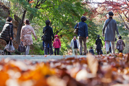 南山北侧循环路连接东大入口站附近的国立剧场和南山缆车乘车点,总长约3.5千米。首尔市为保护这条路的天然景色,截至11月中旬将不会特意扫除落叶,踩在如地毯般的落叶上散步似乎更能感受到秋日的气息。
