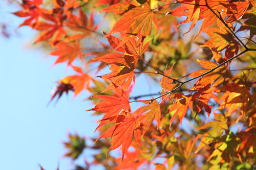 由深绿到浅黄,有浅黄变成赤红,这个季节最动人的枫叶在阳光的照耀下也回馈给人们更加动人的色彩。据气象厅的数据显示,首尔的秋叶在11月初便会达到鼎盛时期。