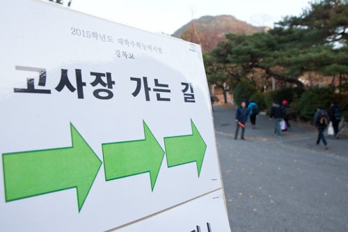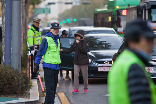 每年“修能”期间都会发生的问题就是交通混乱!政府和警察局在以考试场所为中心半径2km的地方安排了许多交警,保证高考生们乘坐的车辆优先通过。除此以外,还设置了临时停车站,以便高考生顺利到达考场。