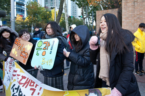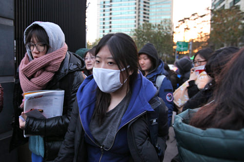 另外一个与中国高考不同的地方是,“修能”一般在11月中旬的周四进行,正是寒气袭来的时节,所以韩国高考又被称为“修能寒流”。今天首尔最低气温降至零下3度,最高气温只有6度。