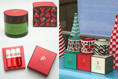 悦诗风吟的圣诞风格则走简洁干练的路线,选取了代表圣诞的槲寄生图案!人气产品“绿茶籽精华霜”包装上有绿叶红果的槲寄生图案,唇彩也简单地点缀着槲寄生。为圣诞夜添加浪漫情调的香氛蜡烛也别具匠心地用有槲寄生图案的小毛衣包装起来。