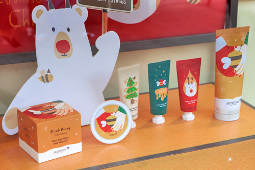 思亲肤的“蜂蜜”系列在圣诞节大变身!勤劳的蜜蜂,喜欢蜂蜜的白熊、甜蜜滋润的蜜酱等形象为化妆品添加了活泼的氛围,可爱的形象让人爱不释手。蜂蜜系列囊括了护手霜、补水面霜、去角质面膜等多种产品。