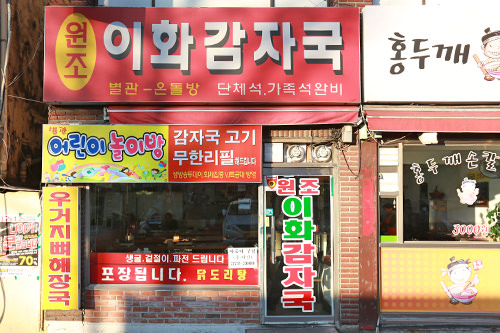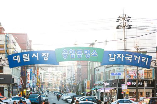 从首尔地铁6号线赛折站出来,步行约10分钟,就能到达大林市场入口处的“鹰岩洞脊骨土豆汤街”。这条有名的脊骨土豆汤街自80年代起就存在了。经过时间的推移,这里渐渐聚集起了很多的脊骨土豆汤专卖店,如今这条街还被韩国旅游发展局评为“全国200个美食主题街”之一了。