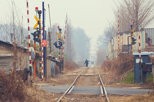 两旁有高大的树木,还有废弃的交通信号灯,黄黑相间的指示牌,以及笔直延伸到尽头的铁轨,这一切都恍若老电影场景一般,仿佛还能听到汽鸣的声音。